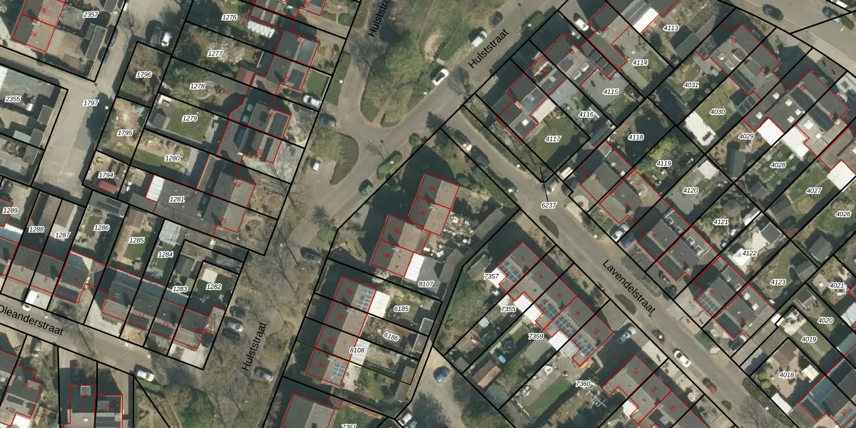 Het perceel waarop Hulststraat 32 staat heeft een oppervlakte van 1246 m². Dit is een zeer groot perceel. De perceeloppervlakte wordt geregistreerd door het Kadaster. Gedetailleerde informatie over de maten van dit perceel kunt u vinden in het rapport Kadastrale kaart met maatvoering van Hulststraat 32.