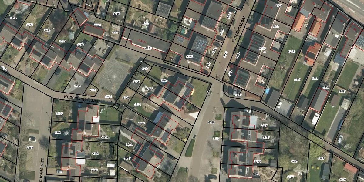 Gebruik de zoekbalk of klik op een perceel voor informatie over de adressen binnen dit perceel.
