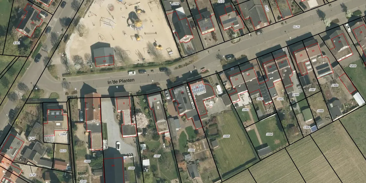 Gebruik de zoekbalk of klik op een perceel voor informatie over de adressen binnen dit perceel.
