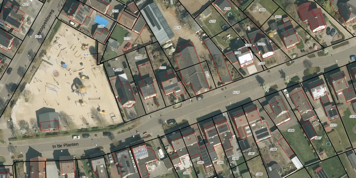 Gebruik de zoekbalk of klik op een perceel voor informatie over de adressen binnen dit perceel.