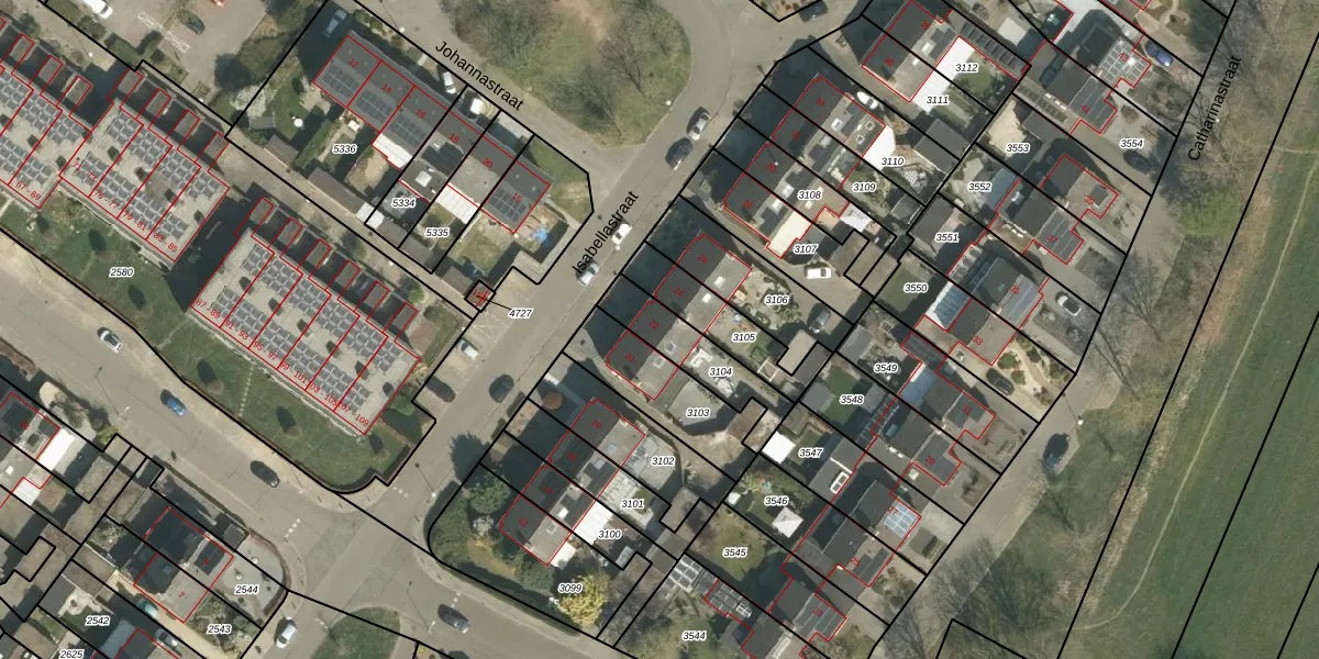 Gebruik de zoekbalk of klik op een perceel voor informatie over de adressen binnen dit perceel.