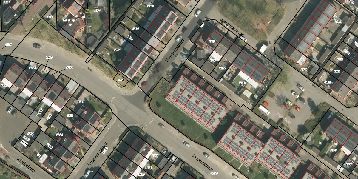 Het perceel waarop Jacobastraat 33 staat heeft een oppervlakte van 4225 m². Dit is een zeer groot perceel. De perceeloppervlakte wordt geregistreerd door het Kadaster. Gedetailleerde informatie over de maten van dit perceel kunt u vinden in het rapport Kadastrale kaart met maatvoering van Jacobastraat 33.