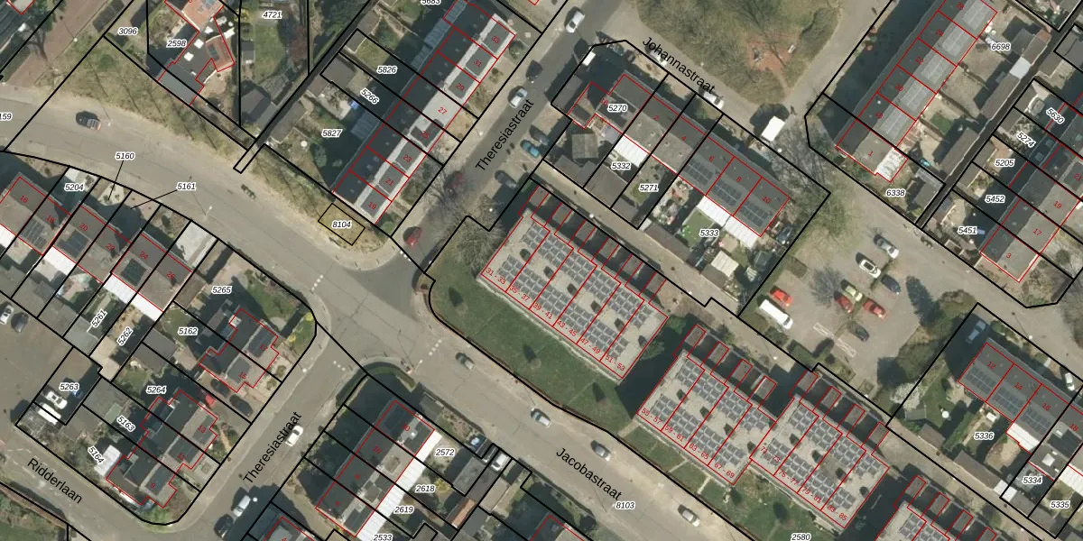 Het perceel waarop Jacobastraat 37 staat heeft een oppervlakte van 4225 m². Dit is een zeer groot perceel. De perceeloppervlakte wordt geregistreerd door het Kadaster. Gedetailleerde informatie over de maten van dit perceel kunt u vinden in het rapport Kadastrale kaart met maatvoering van Jacobastraat 37.
