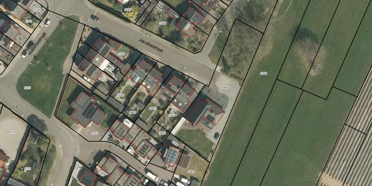 Jacobastraat 42 is gelegen op kadastraal perceel ECH00K3543. Deze kadastrale aanduiding is uniek en wordt gebruikt door het Kadaster om eigendomsrechten en andere zakelijke rechten vast te leggen. Het perceel maakt onderdeel uit van de kadastrale gemeente Echt.