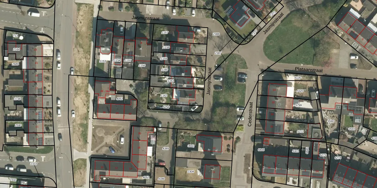 Het perceel waarop Jasmijnstraat 20 staat heeft een oppervlakte van 255 m². Dit is een middelgroot perceel. De perceeloppervlakte wordt geregistreerd door het Kadaster. Gedetailleerde informatie over de maten van dit perceel kunt u vinden in het rapport Kadastrale kaart met maatvoering van Jasmijnstraat 20.