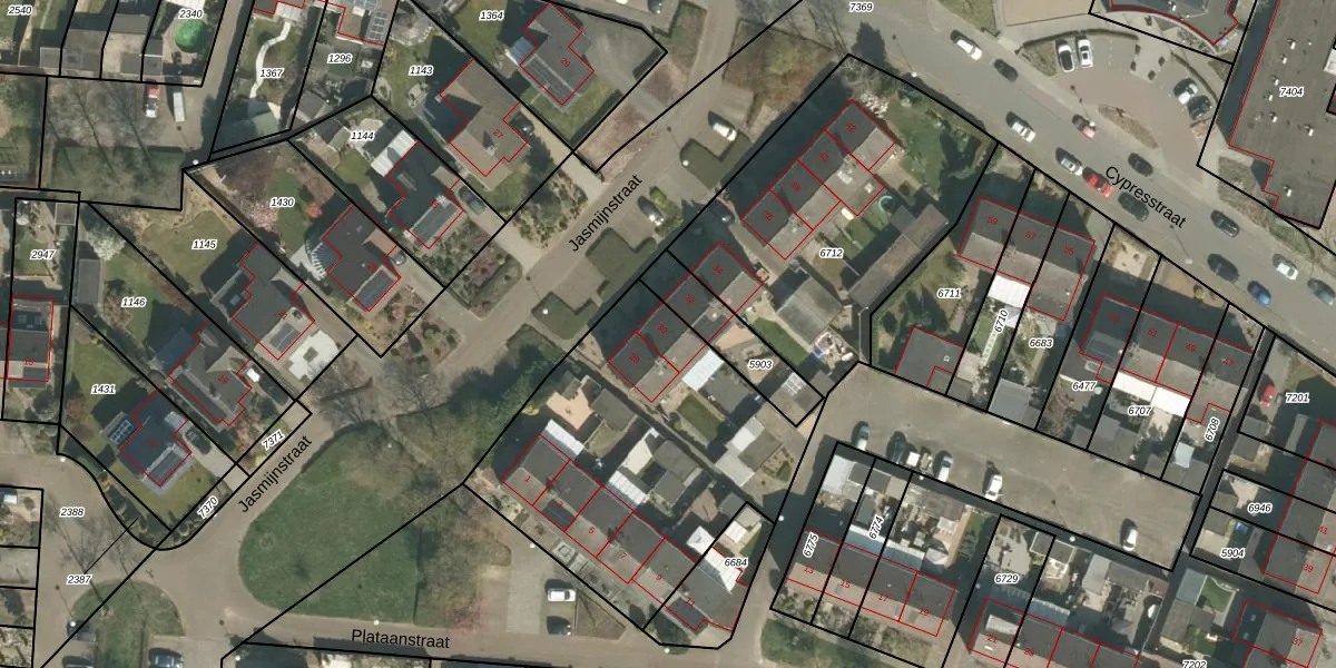 Het perceel waarop Jasmijnstraat 30 staat heeft een oppervlakte van 2706 m². Dit is een zeer groot perceel. De perceeloppervlakte wordt geregistreerd door het Kadaster. Gedetailleerde informatie over de maten van dit perceel kunt u vinden in het rapport Kadastrale kaart met maatvoering van Jasmijnstraat 30.