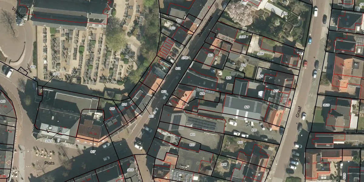 Jodenstraat 12 is gelegen op kadastraal perceel ECH00M828. Deze kadastrale aanduiding is uniek en wordt gebruikt door het Kadaster om eigendomsrechten en andere zakelijke rechten vast te leggen. Het perceel maakt onderdeel uit van de kadastrale gemeente Echt.