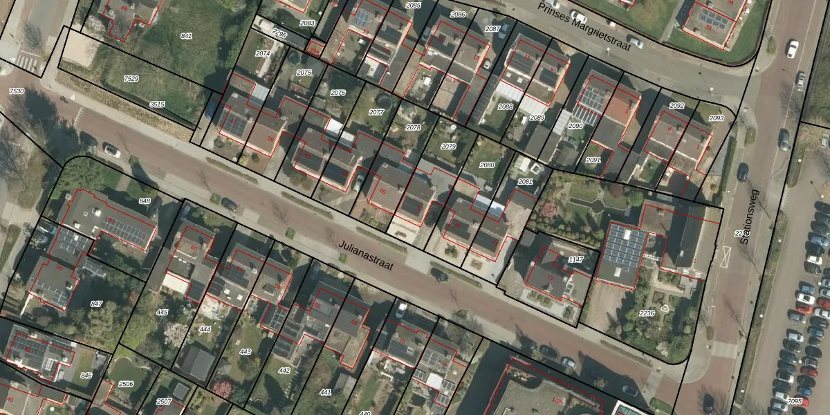 Het perceel waarop Julianastraat 67 staat heeft een oppervlakte van 310 m². Dit is een groot perceel. De perceeloppervlakte wordt geregistreerd door het Kadaster. Gedetailleerde informatie over de maten van dit perceel kunt u vinden in het rapport Kadastrale kaart met maatvoering van Julianastraat 67.