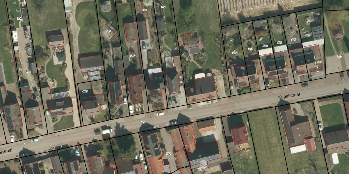 Kapelstraat 16 is gelegen op kadastraal perceel ECH00R700. Deze kadastrale aanduiding is uniek en wordt gebruikt door het Kadaster om eigendomsrechten en andere zakelijke rechten vast te leggen. Het perceel maakt onderdeel uit van de kadastrale gemeente Echt.