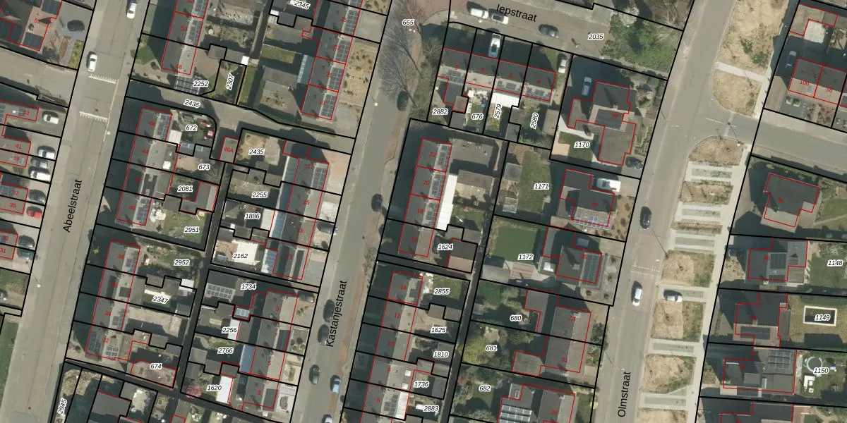 Het perceel waarop Kastanjestraat 18 staat heeft een oppervlakte van 1633 m². Dit is een zeer groot perceel. De perceeloppervlakte wordt geregistreerd door het Kadaster. Gedetailleerde informatie over de maten van dit perceel kunt u vinden in het rapport Kadastrale kaart met maatvoering van Kastanjestraat 18.