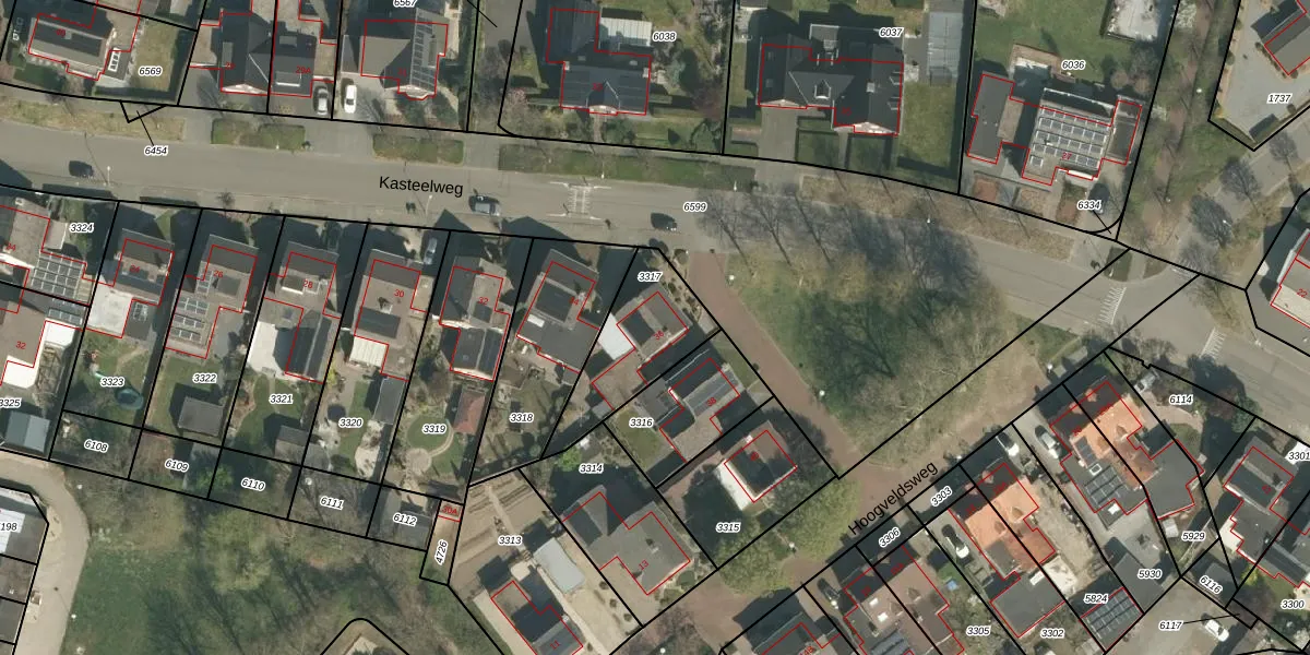 Het perceel waarop Kasteelweg 36 staat heeft een oppervlakte van 335 m². Dit is een groot perceel. De perceeloppervlakte wordt geregistreerd door het Kadaster. Gedetailleerde informatie over de maten van dit perceel kunt u vinden in het rapport Kadastrale kaart met maatvoering van Kasteelweg 36.