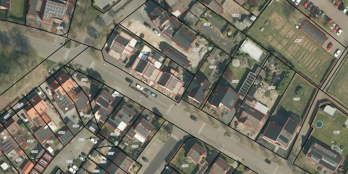 Het perceel waarop Kasteelweg 47 staat heeft een oppervlakte van 1079 m². Dit is een zeer groot perceel. De perceeloppervlakte wordt geregistreerd door het Kadaster. Gedetailleerde informatie over de maten van dit perceel kunt u vinden in het rapport Kadastrale kaart met maatvoering van Kasteelweg 47.