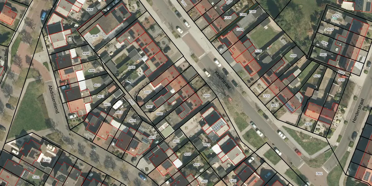 Gebruik de zoekbalk of klik op een perceel voor informatie over de adressen binnen dit perceel.