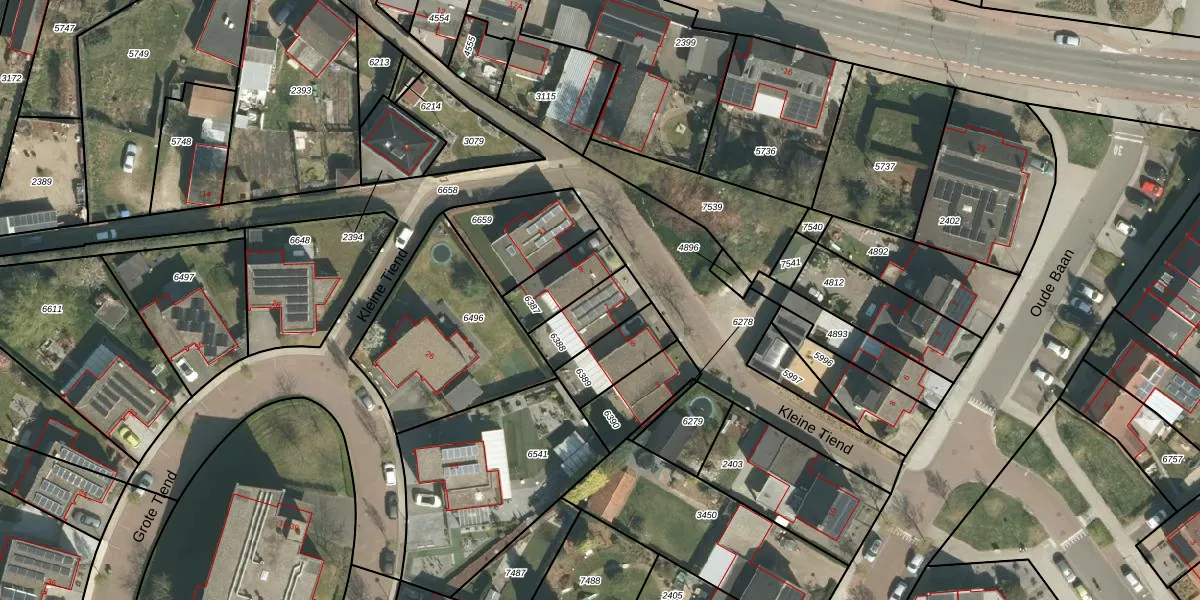 Kleine Tiend 7 is gelegen op kadastraal perceel ECH00K6388. Deze kadastrale aanduiding is uniek en wordt gebruikt door het Kadaster om eigendomsrechten en andere zakelijke rechten vast te leggen. Het perceel maakt onderdeel uit van de kadastrale gemeente Echt.