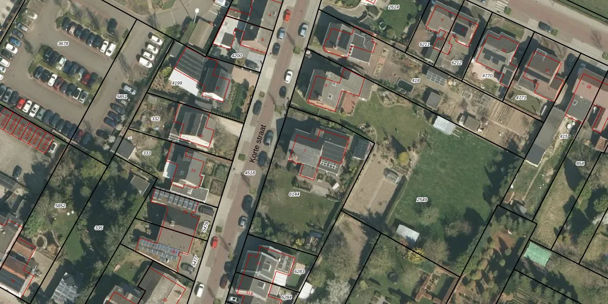 Het perceel waarop Korte straat 7 staat heeft een oppervlakte van 1185 m². Dit is een zeer groot perceel. De perceeloppervlakte wordt geregistreerd door het Kadaster. Gedetailleerde informatie over de maten van dit perceel kunt u vinden in het rapport Kadastrale kaart met maatvoering van Korte straat 7.