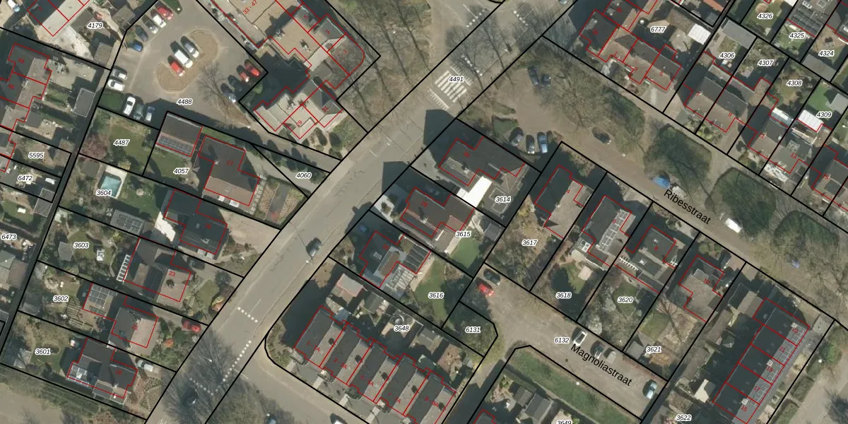 Gebruik de zoekbalk of klik op een perceel voor informatie over de adressen binnen dit perceel.