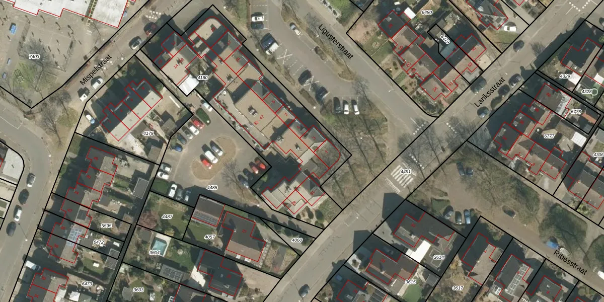 Het perceel waarop Lariksstraat 37 staat heeft een oppervlakte van 1920 m². Dit is een zeer groot perceel. De perceeloppervlakte wordt geregistreerd door het Kadaster. Gedetailleerde informatie over de maten van dit perceel kunt u vinden in het rapport Kadastrale kaart met maatvoering van Lariksstraat 37.