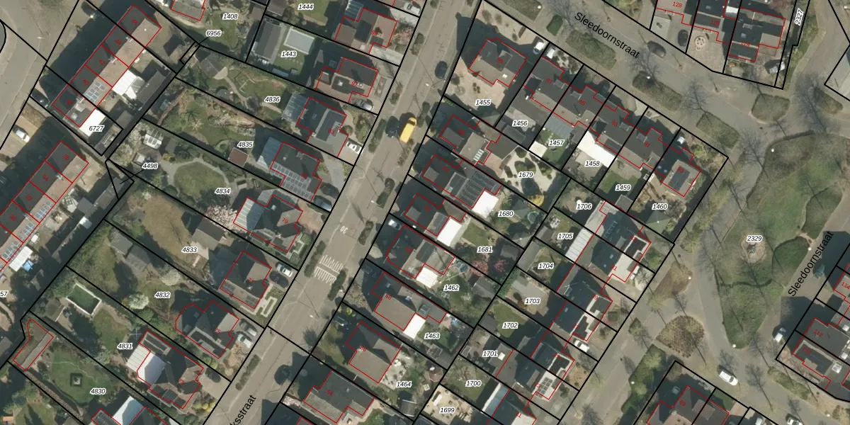 Gebruik de zoekbalk of klik op een perceel voor informatie over de adressen binnen dit perceel.