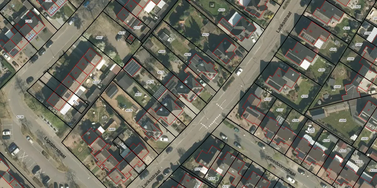 Het perceel waarop Lariksstraat 63 staat heeft een oppervlakte van 377 m². Dit is een groot perceel. De perceeloppervlakte wordt geregistreerd door het Kadaster. Gedetailleerde informatie over de maten van dit perceel kunt u vinden in het rapport Kadastrale kaart met maatvoering van Lariksstraat 63.