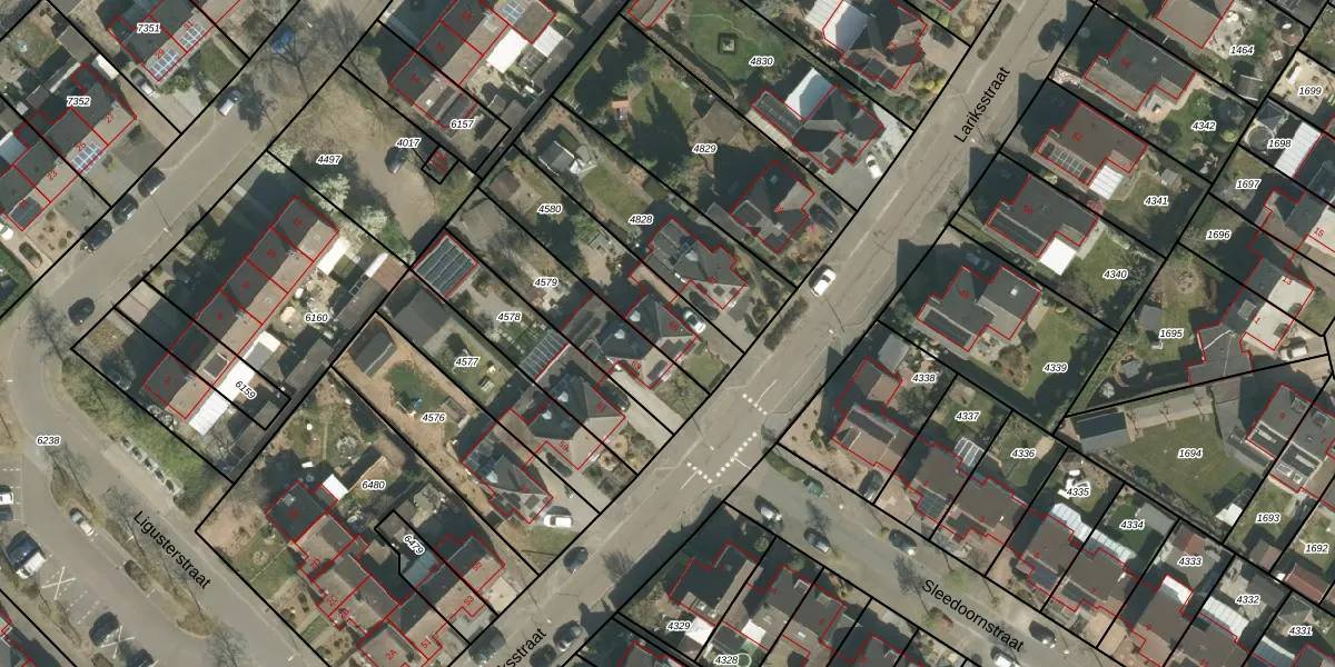 Het perceel waarop Lariksstraat 65 staat heeft een oppervlakte van 380 m². Dit is een groot perceel. De perceeloppervlakte wordt geregistreerd door het Kadaster. Gedetailleerde informatie over de maten van dit perceel kunt u vinden in het rapport Kadastrale kaart met maatvoering van Lariksstraat 65.