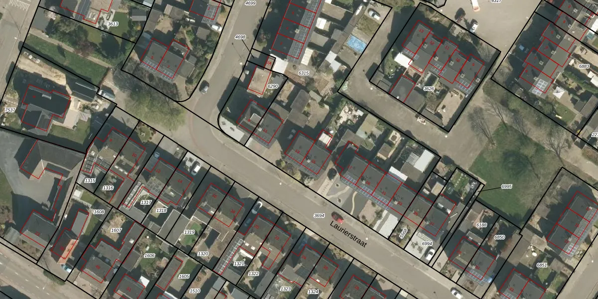 Het perceel waarop Laurierstraat 13 staat heeft een oppervlakte van 3093 m². Dit is een zeer groot perceel. De perceeloppervlakte wordt geregistreerd door het Kadaster. Gedetailleerde informatie over de maten van dit perceel kunt u vinden in het rapport Kadastrale kaart met maatvoering van Laurierstraat 13.