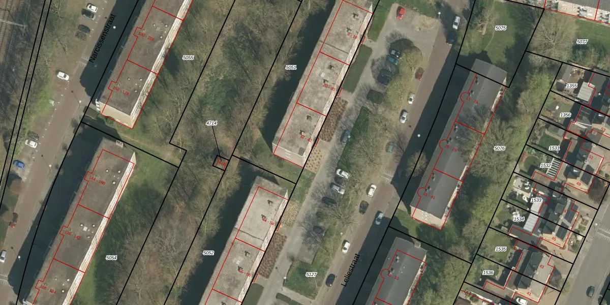 Het perceel waarop Leliestraat 38 staat heeft een oppervlakte van 1530 m². Dit is een zeer groot perceel. De perceeloppervlakte wordt geregistreerd door het Kadaster. Gedetailleerde informatie over de maten van dit perceel kunt u vinden in het rapport Kadastrale kaart met maatvoering van Leliestraat 38.