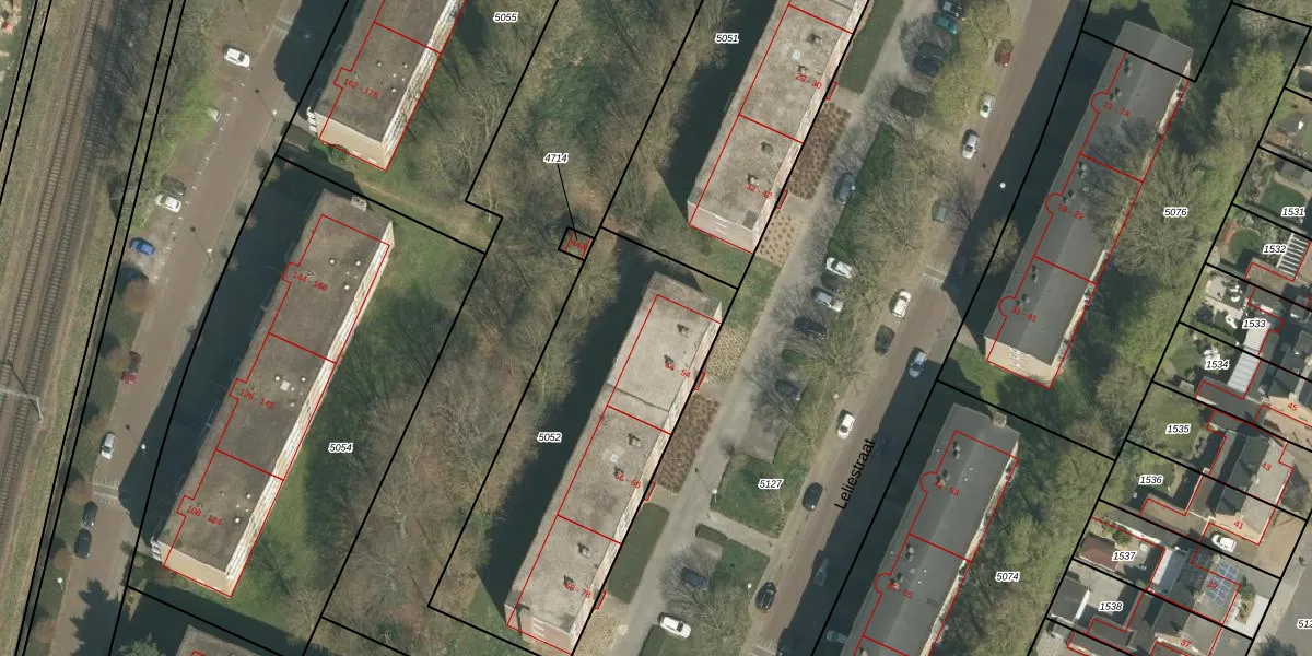 Het perceel waarop Leliestraat 48 staat heeft een oppervlakte van 1460 m². Dit is een zeer groot perceel. De perceeloppervlakte wordt geregistreerd door het Kadaster. Gedetailleerde informatie over de maten van dit perceel kunt u vinden in het rapport Kadastrale kaart met maatvoering van Leliestraat 48.