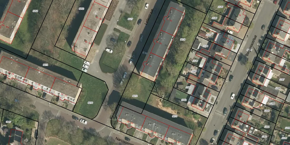 Leliestraat 73-A is gelegen op kadastraal perceel ECH00K5074. Deze kadastrale aanduiding is uniek en wordt gebruikt door het Kadaster om eigendomsrechten en andere zakelijke rechten vast te leggen. Het perceel maakt onderdeel uit van de kadastrale gemeente Echt.