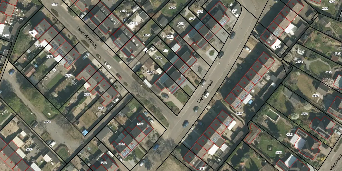 Het perceel waarop Ligusterstraat 37 staat heeft een oppervlakte van 449 m². Dit is een groot perceel. De perceeloppervlakte wordt geregistreerd door het Kadaster. Gedetailleerde informatie over de maten van dit perceel kunt u vinden in het rapport Kadastrale kaart met maatvoering van Ligusterstraat 37.