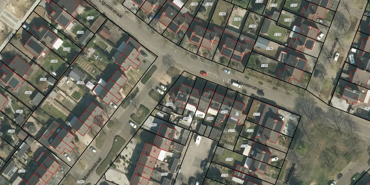 Het perceel waarop Ligusterstraat 91 staat heeft een oppervlakte van 245 m². Dit is een middelgroot perceel. De perceeloppervlakte wordt geregistreerd door het Kadaster. Gedetailleerde informatie over de maten van dit perceel kunt u vinden in het rapport Kadastrale kaart met maatvoering van Ligusterstraat 91.