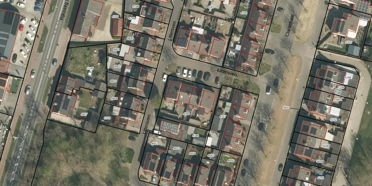 Het perceel waarop Littersven 18 staat heeft een oppervlakte van 675 m². Dit is een groot perceel. De perceeloppervlakte wordt geregistreerd door het Kadaster. Gedetailleerde informatie over de maten van dit perceel kunt u vinden in het rapport Kadastrale kaart met maatvoering van Littersven 18.