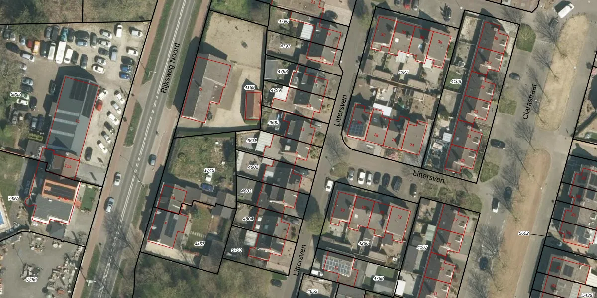 Littersven 9 is gelegen op kadastraal perceel ECH00K4801. Deze kadastrale aanduiding is uniek en wordt gebruikt door het Kadaster om eigendomsrechten en andere zakelijke rechten vast te leggen. Het perceel maakt onderdeel uit van de kadastrale gemeente Echt.