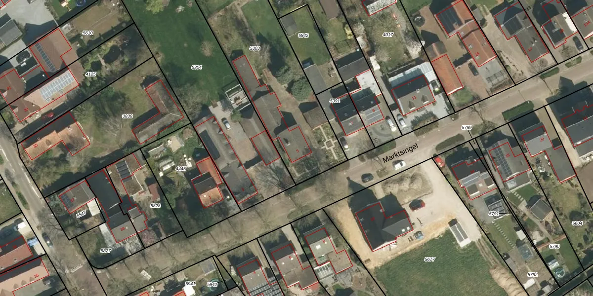 Marktsingel 5 is gelegen op kadastraal perceel ECH00G5303. Deze kadastrale aanduiding is uniek en wordt gebruikt door het Kadaster om eigendomsrechten en andere zakelijke rechten vast te leggen. Het perceel maakt onderdeel uit van de kadastrale gemeente Echt.
