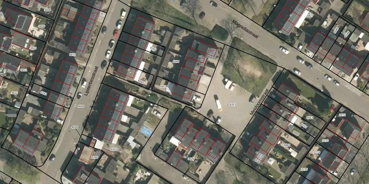 Gebruik de zoekbalk of klik op een perceel voor informatie over de adressen binnen dit perceel.