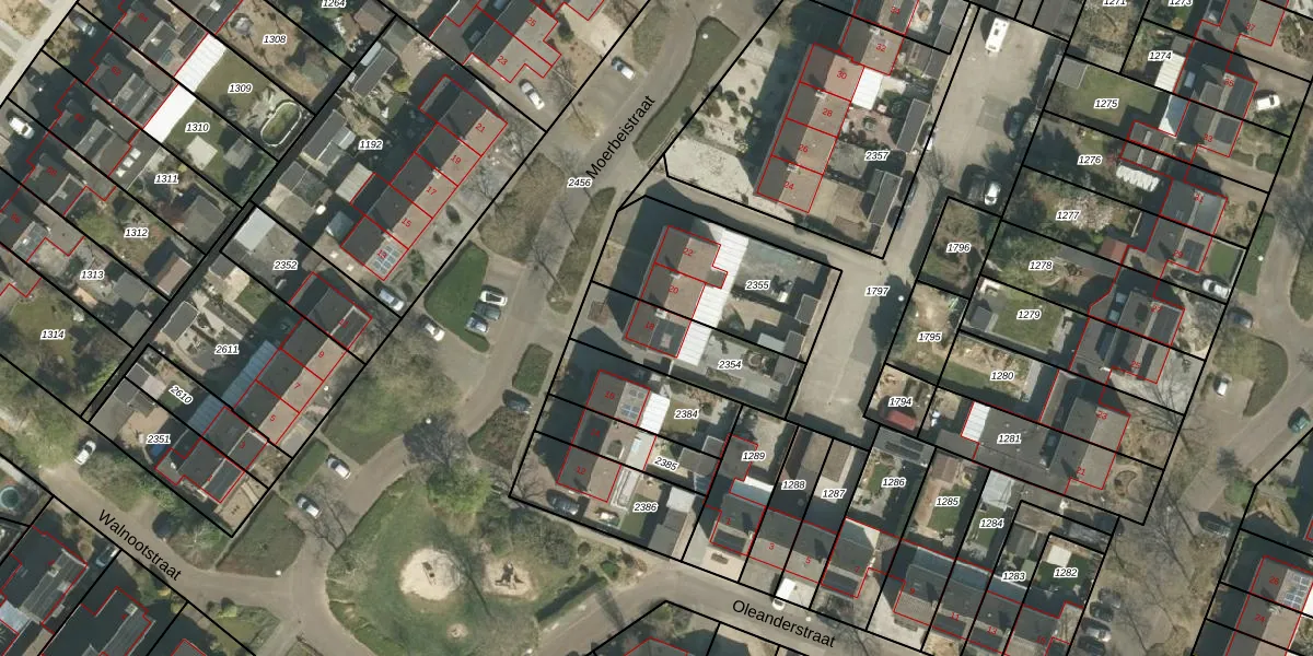 Het perceel waarop Moerbeistraat 18 staat heeft een oppervlakte van 322 m². Dit is een groot perceel. De perceeloppervlakte wordt geregistreerd door het Kadaster. Gedetailleerde informatie over de maten van dit perceel kunt u vinden in het rapport Kadastrale kaart met maatvoering van Moerbeistraat 18.