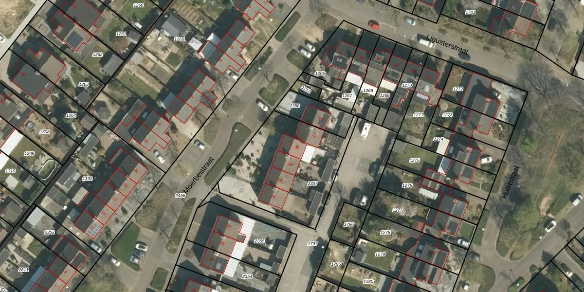 Het perceel waarop Moerbeistraat 30 staat heeft een oppervlakte van 1090 m². Dit is een zeer groot perceel. De perceeloppervlakte wordt geregistreerd door het Kadaster. Gedetailleerde informatie over de maten van dit perceel kunt u vinden in het rapport Kadastrale kaart met maatvoering van Moerbeistraat 30.