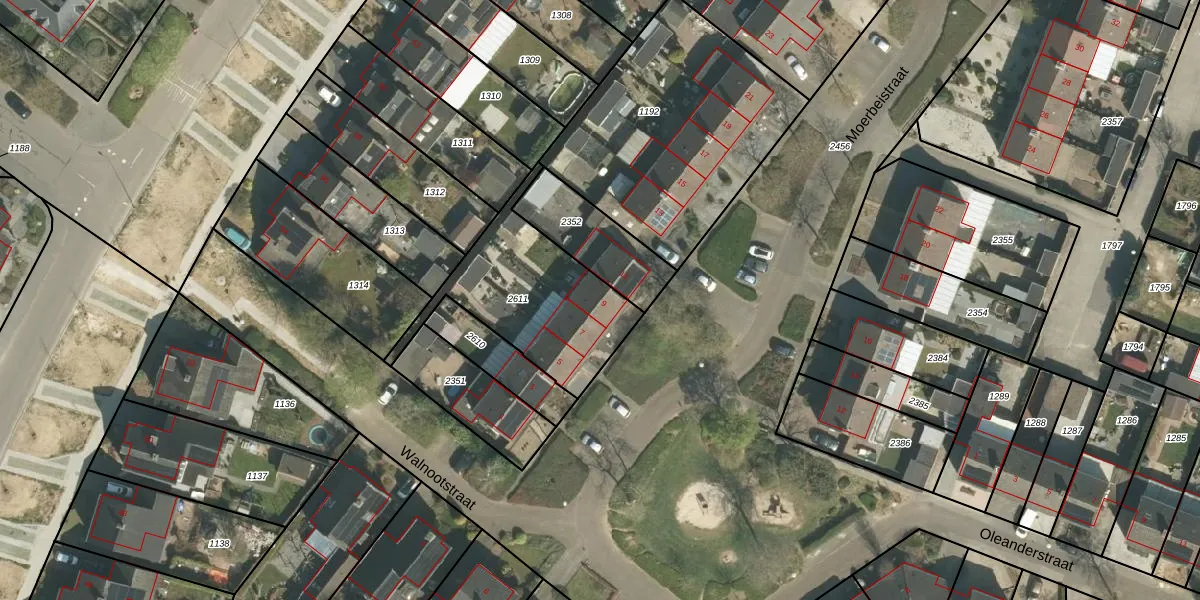 Het perceel waarop Moerbeistraat 9 staat heeft een oppervlakte van 554 m². Dit is een groot perceel. De perceeloppervlakte wordt geregistreerd door het Kadaster. Gedetailleerde informatie over de maten van dit perceel kunt u vinden in het rapport Kadastrale kaart met maatvoering van Moerbeistraat 9.