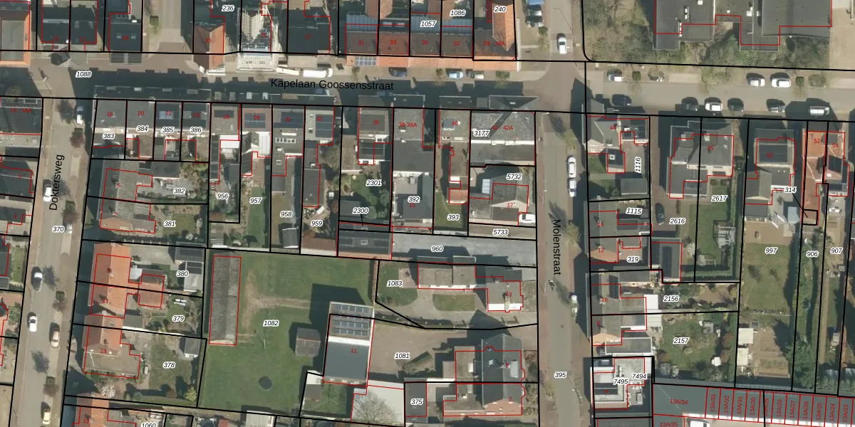 Molenstraat 15 is gelegen op kadastraal perceel ECH00K392. Deze kadastrale aanduiding is uniek en wordt gebruikt door het Kadaster om eigendomsrechten en andere zakelijke rechten vast te leggen. Het perceel maakt onderdeel uit van de kadastrale gemeente Echt.