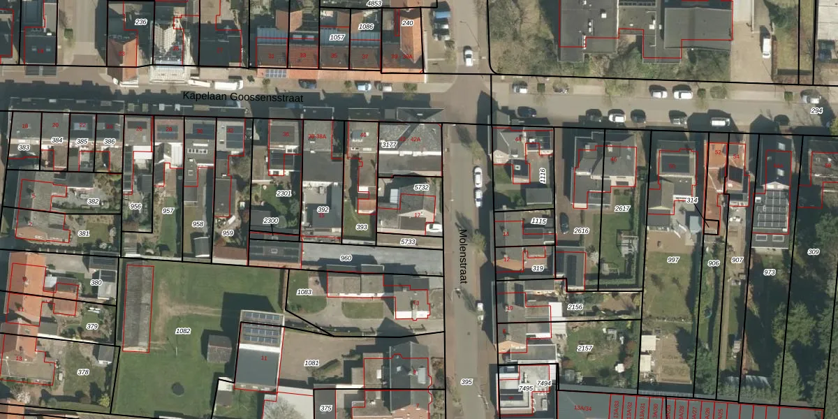 Het perceel waarop Molenstraat 17 staat heeft een oppervlakte van 220 m². Dit is een middelgroot perceel. De perceeloppervlakte wordt geregistreerd door het Kadaster. Gedetailleerde informatie over de maten van dit perceel kunt u vinden in het rapport Kadastrale kaart met maatvoering van Molenstraat 17.
