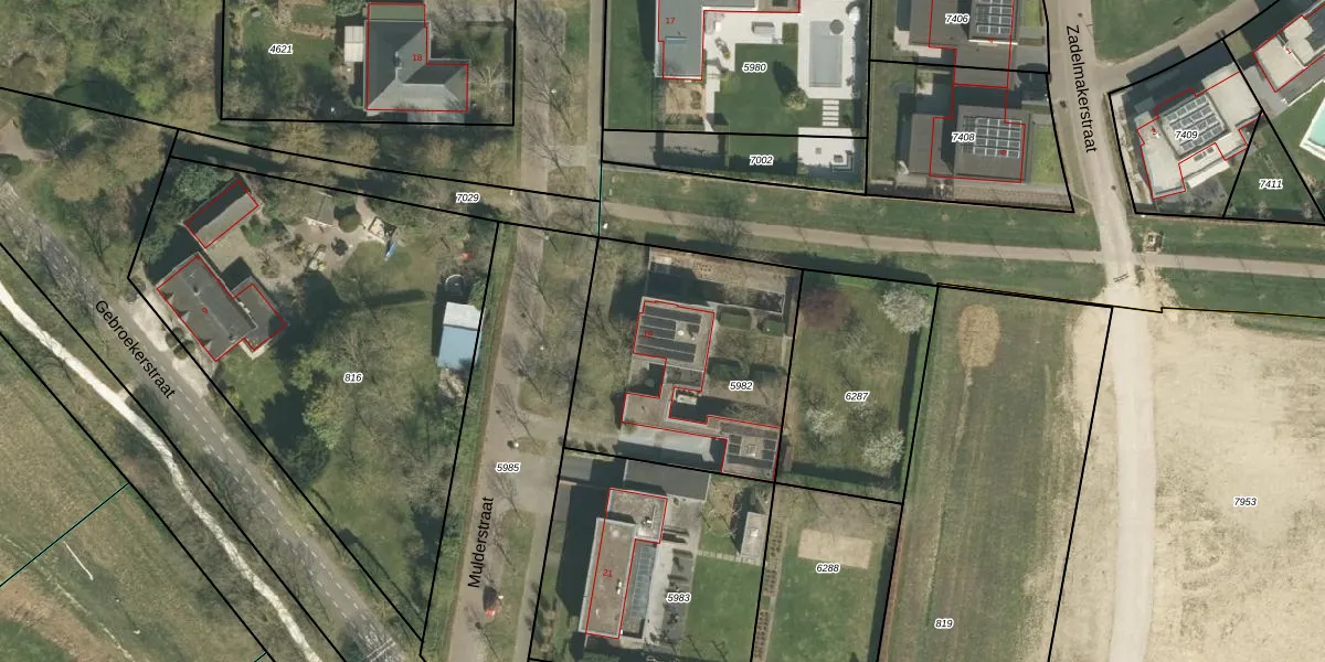 Mulderstraat 19 is gelegen op kadastraal perceel ECH00K5982. Deze kadastrale aanduiding is uniek en wordt gebruikt door het Kadaster om eigendomsrechten en andere zakelijke rechten vast te leggen. Het perceel maakt onderdeel uit van de kadastrale gemeente Echt.