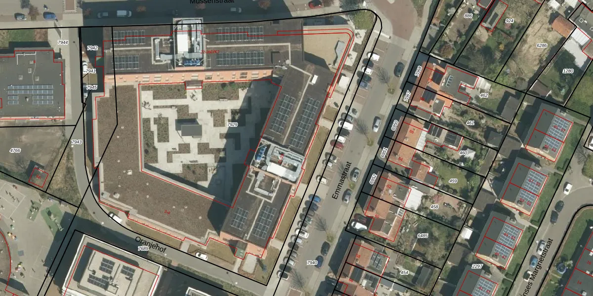 Het perceel waarop Mussenstraat 26-D-K3 staat heeft een oppervlakte van 5865 m². Dit is een zeer groot perceel. De perceeloppervlakte wordt geregistreerd door het Kadaster. Gedetailleerde informatie over de maten van dit perceel kunt u vinden in het rapport Kadastrale kaart met maatvoering van Mussenstraat 26-D-K3.