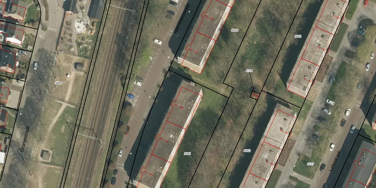 Het perceel waarop Narcissenstraat 156 staat heeft een oppervlakte van 2290 m². Dit is een zeer groot perceel. De perceeloppervlakte wordt geregistreerd door het Kadaster. Gedetailleerde informatie over de maten van dit perceel kunt u vinden in het rapport Kadastrale kaart met maatvoering van Narcissenstraat 156.