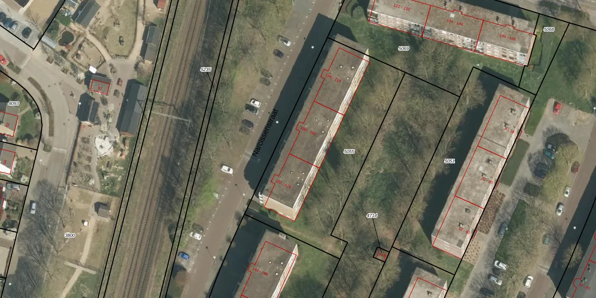 Narcissenstraat 180-A is gelegen op kadastraal perceel ECH00K5055. Deze kadastrale aanduiding is uniek en wordt gebruikt door het Kadaster om eigendomsrechten en andere zakelijke rechten vast te leggen. Het perceel maakt onderdeel uit van de kadastrale gemeente Echt.