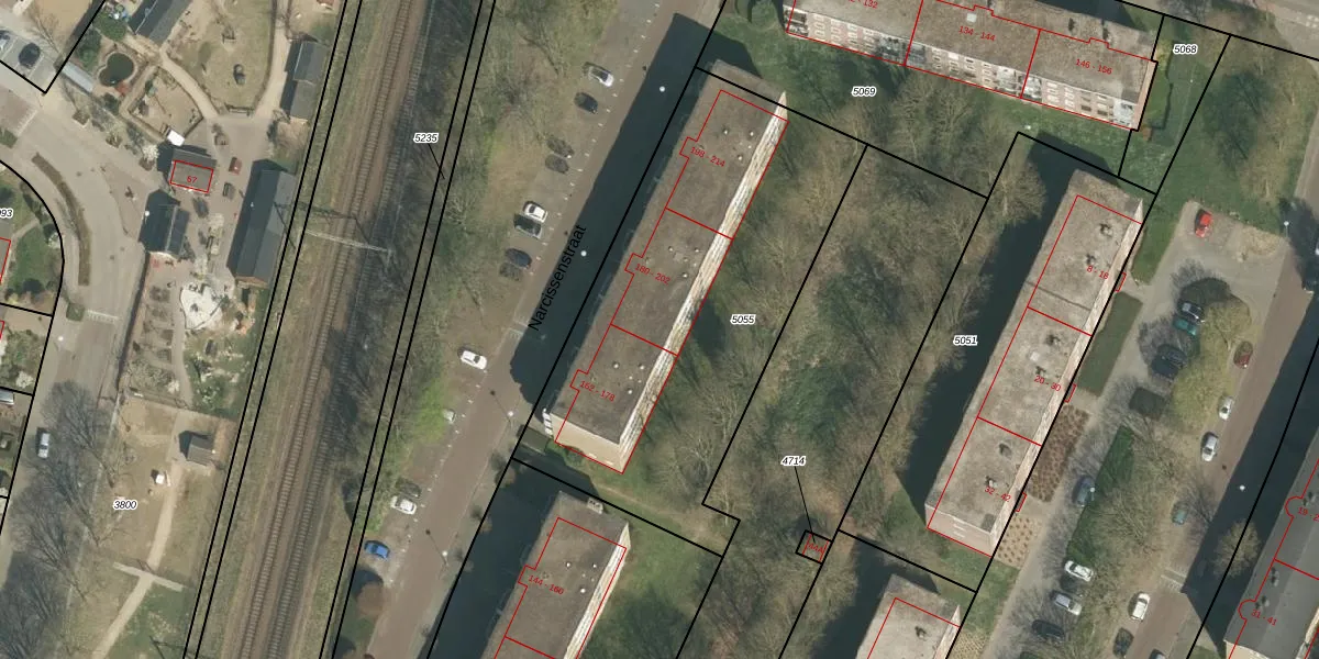 Narcissenstraat 182 is gelegen op kadastraal perceel ECH00K5055. Deze kadastrale aanduiding is uniek en wordt gebruikt door het Kadaster om eigendomsrechten en andere zakelijke rechten vast te leggen. Het perceel maakt onderdeel uit van de kadastrale gemeente Echt.