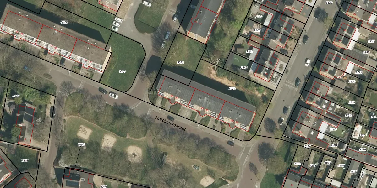 Het perceel waarop Narcissenstraat 44 staat heeft een oppervlakte van 1620 m². Dit is een zeer groot perceel. De perceeloppervlakte wordt geregistreerd door het Kadaster. Gedetailleerde informatie over de maten van dit perceel kunt u vinden in het rapport Kadastrale kaart met maatvoering van Narcissenstraat 44.