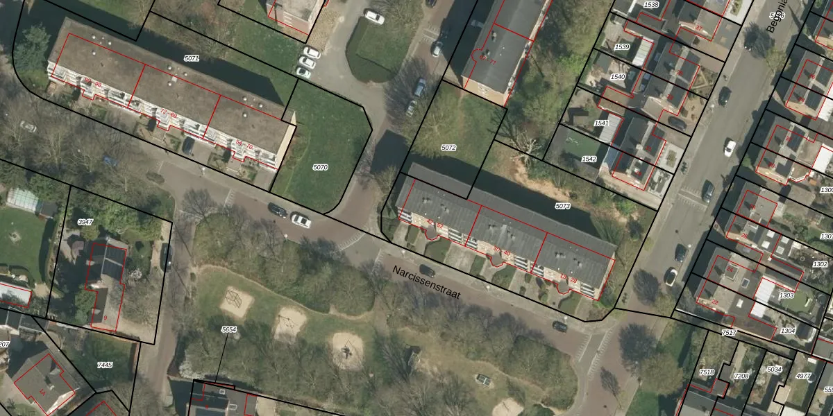 Het perceel waarop Narcissenstraat 48 staat heeft een oppervlakte van 1620 m². Dit is een zeer groot perceel. De perceeloppervlakte wordt geregistreerd door het Kadaster. Gedetailleerde informatie over de maten van dit perceel kunt u vinden in het rapport Kadastrale kaart met maatvoering van Narcissenstraat 48.
