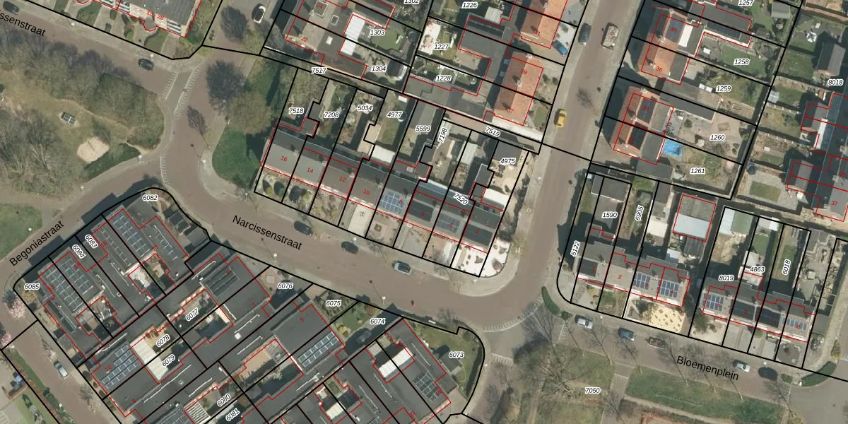 Gebruik de zoekbalk of klik op een perceel voor informatie over de adressen binnen dit perceel.