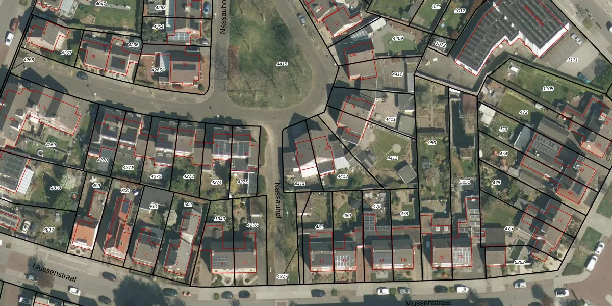 Het perceel waarop Nassauhof 12 staat heeft een oppervlakte van 233 m². Dit is een middelgroot perceel. De perceeloppervlakte wordt geregistreerd door het Kadaster. Gedetailleerde informatie over de maten van dit perceel kunt u vinden in het rapport Kadastrale kaart met maatvoering van Nassauhof 12.