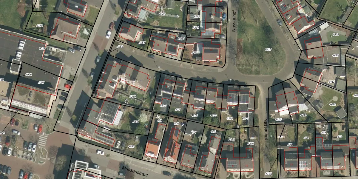 Het perceel waarop Nassauhof 7 staat heeft een oppervlakte van 210 m². Dit is een middelgroot perceel. De perceeloppervlakte wordt geregistreerd door het Kadaster. Gedetailleerde informatie over de maten van dit perceel kunt u vinden in het rapport Kadastrale kaart met maatvoering van Nassauhof 7.
