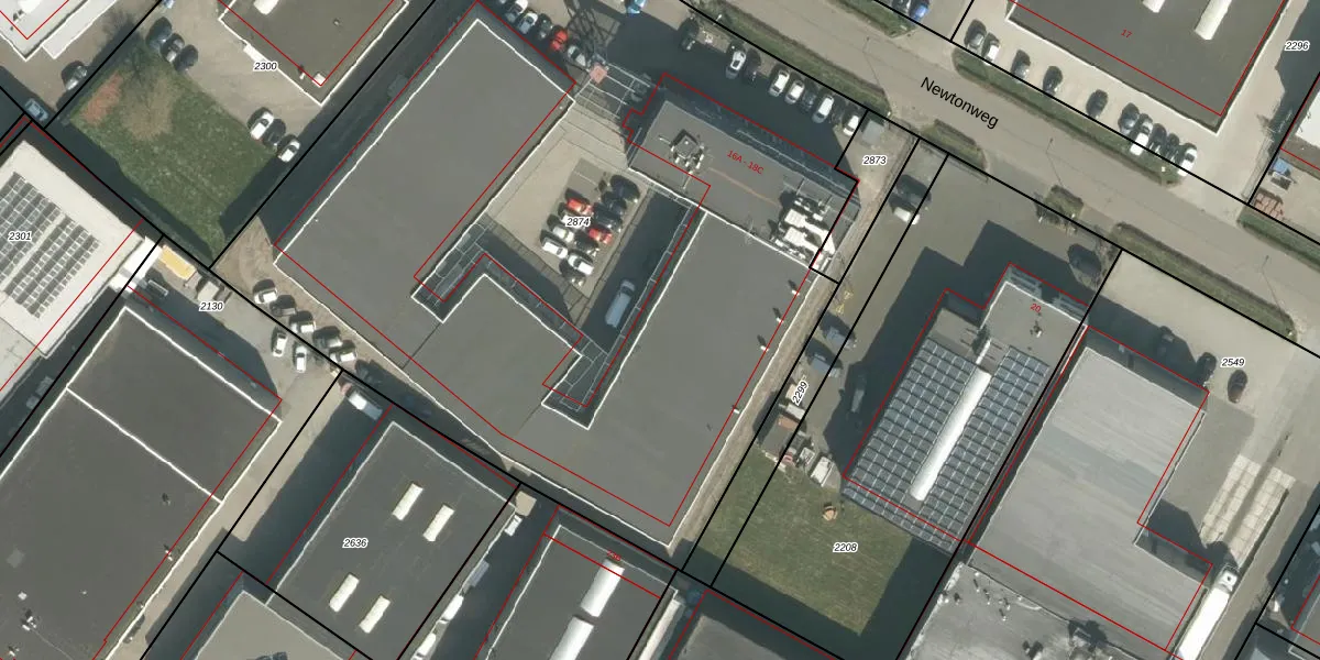 Het perceel waarop Newtonweg 16-J staat heeft een oppervlakte van 5661 m². Dit is een zeer groot perceel. De perceeloppervlakte wordt geregistreerd door het Kadaster. Gedetailleerde informatie over de maten van dit perceel kunt u vinden in het rapport Kadastrale kaart met maatvoering van Newtonweg 16-J.
